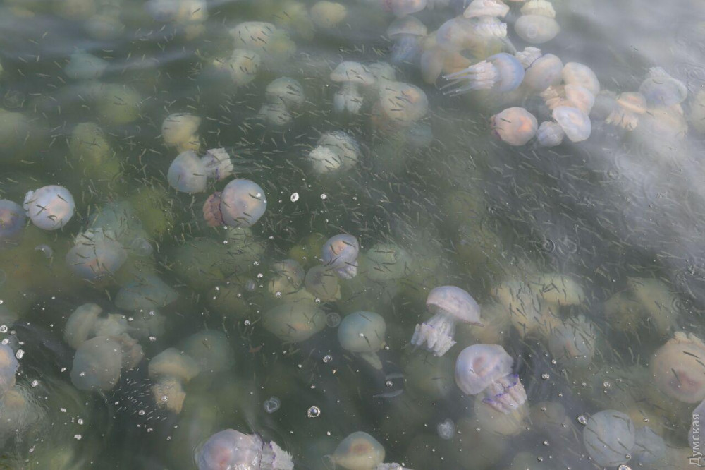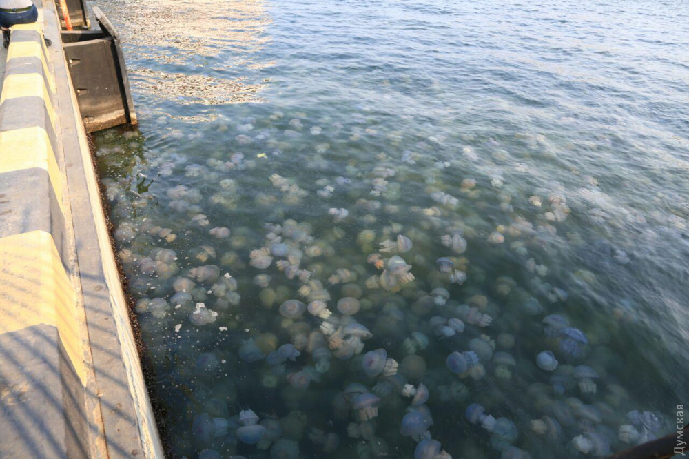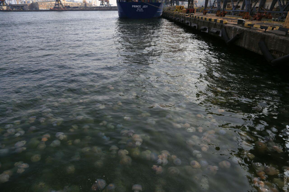 Величезна кількість медуз спостерігається сьогодні на одеському узбережжі. Особливо багато їх в акваторії Одеського порту в районі 15 і 16 причалів, пише “Думская”.