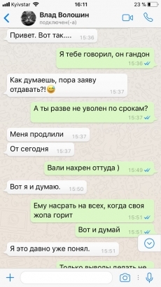 «Він (Волошин — Вісточка) ділиться копіями доручень голови Миколаївської ОДА Олексія Савченка, а також копією висновків перевірки Держаудитслжби скандальних ремонтних робіт в аеропорту. Далі з листування видно, що Владислав Волошин хотів писати заяву на звільнення, але губернатор продовжив йому контракт», — написав журналіст.