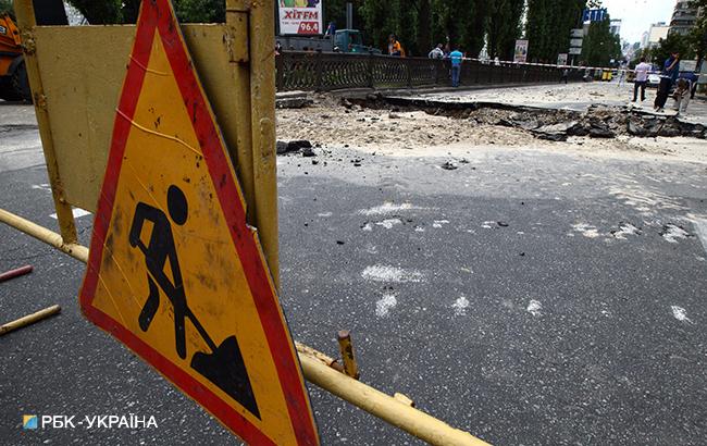 На Оболоні в Києві внаслідок прориву трубопроводу зірвало частину асфальту