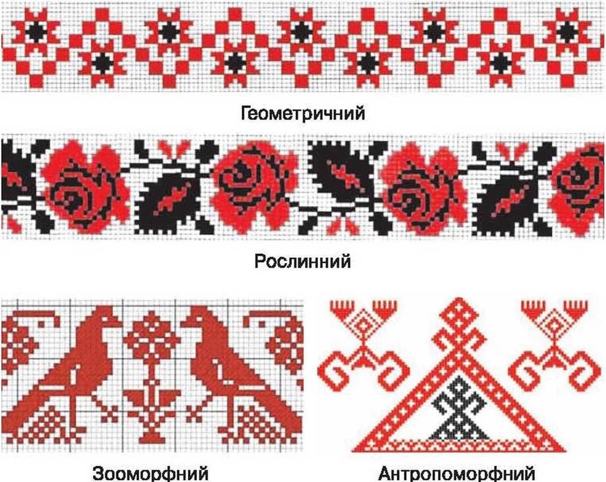 Перш за все варто зазначити, що більшість мотивів для орнаменту українцям подарувала сама матінка-природа. Але тим, що всю природу зобразити за допомогою голки і нитки неможливо, визначають основні інтерпретації візерунків, які містять той чи інший елемент з широким смисловим навантаженням. Перш за все це геометричний (Гуцульщина, Поділля, Полтава) та рослинний (Буковина, Волинь, Поділля, Побужжя) орнаменти.